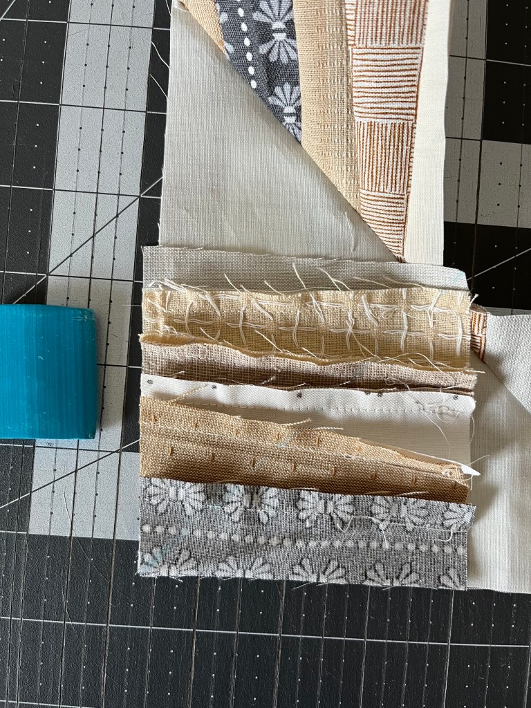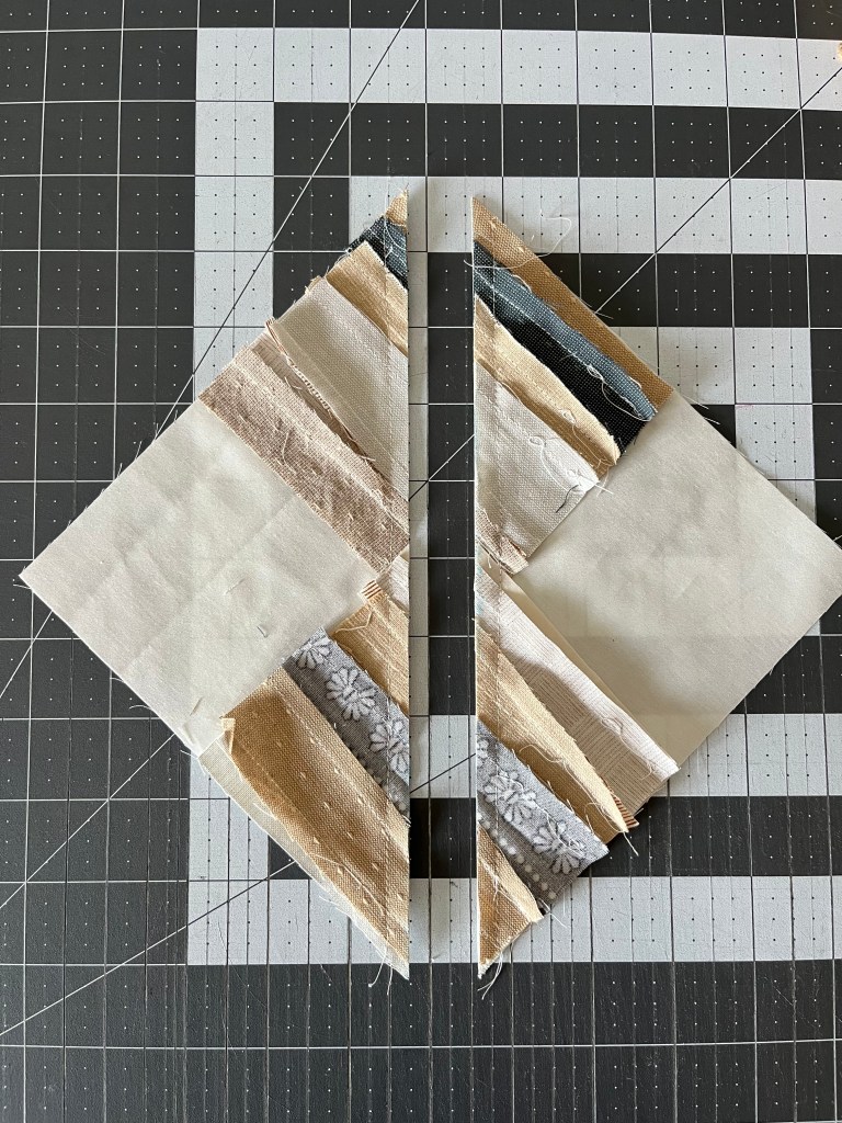Step 4: Cut along the guideline. Press seams to the side of the darker fabric.
