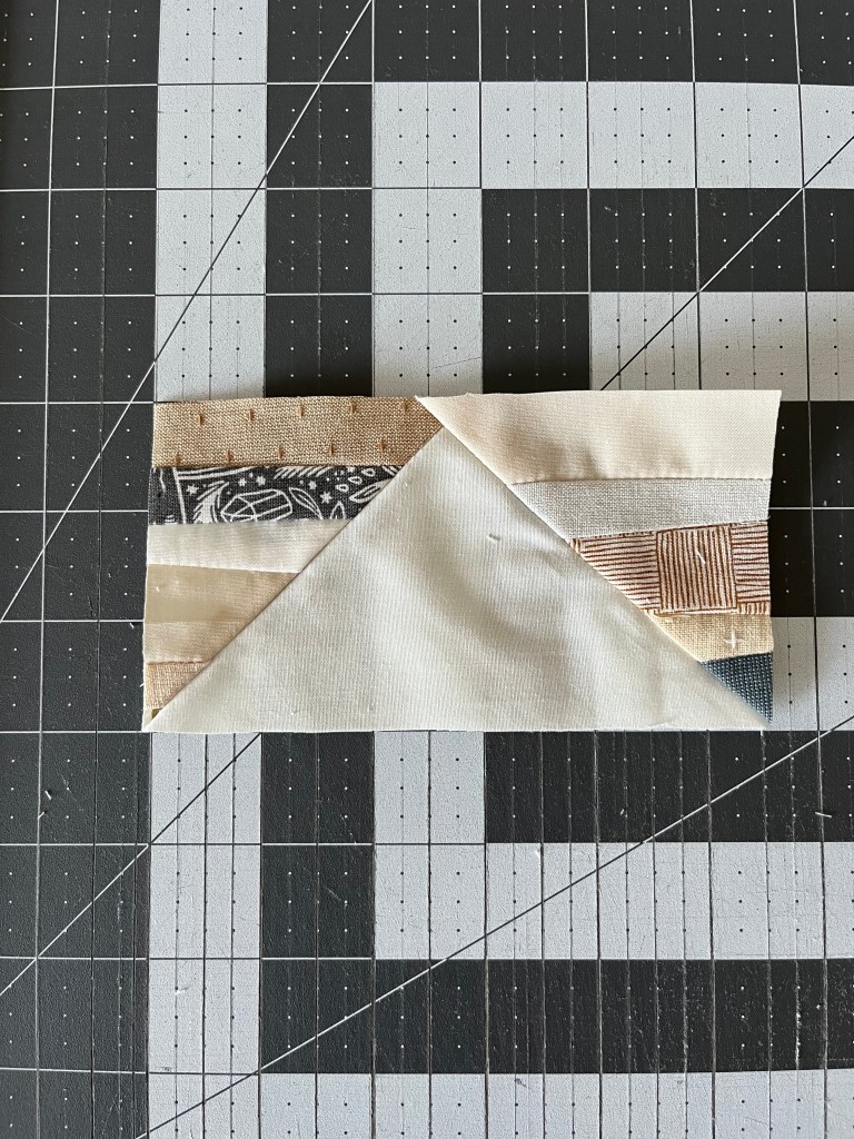 That’s it! The finished block will measure 3″ x 5.5″ and should look like block below. Repeat with the rest of your flying geese units.