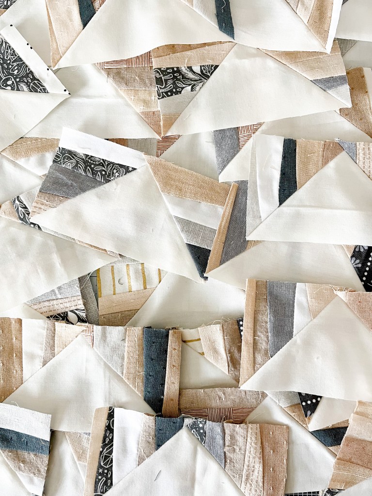 I’ll admit, the first time I made flying geese, they were a total mess. The pattern I was following didn’t allow for much trimming, and I’ve realized since then that I like to have a lil’ room to trim, whether its half-square triangles, flying geese, etc. As a result, I’ve made these flying geese a little bigger than needed, giving us room to trim them down to the perfect size. I will also include step-by-step trimming instructions for flying geese when we get to that part. Let’s go!
